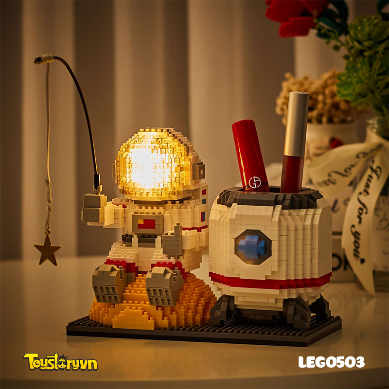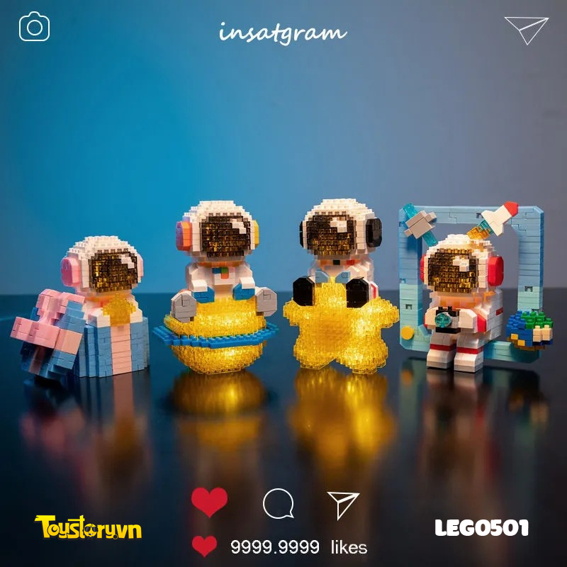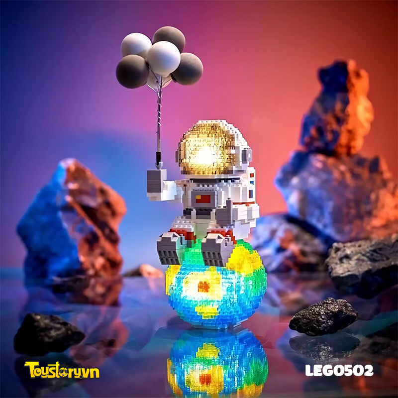 Với nhiều hình dáng và kích cỡ nhưng vẫn xoay quanh chủ đề nhân vật phi hành gia quen thuộc có cả những mẫu phát sáng. Mẫu này cực kỳ là đáng yêu luôn. Đặc biệt là lúc tắt đèn và nếu các bạn biết trang trí góc trưng bày thì đây là mẫu Đồ chơi lắp ghép nên có trong phòng. Chúng ta có một số mẫu tham khảo sau đây.