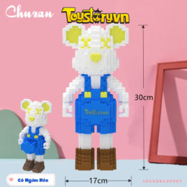 Lego Gấu BearBrick 45cm XINZ đẹp màu trắng trái tim, quần xanh dương Tặng kèm Búa – LEGOXINZBR1751