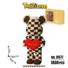 Lego Gấu Bearbrick 32cm Gấu Ôm tim màu Caro Nâu Sữa Tặng kèm Búa LEGODUZBR8977