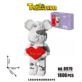 Lego Gấu Bearbrick 32cm Gấu Ôm Tim Màu Trắng – Xám Tặng kèm Búa LEGODUZBR8979