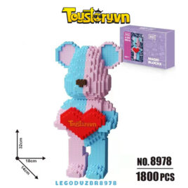Lego Gấu Bearbrick 32cm Gấu Ôm tim màu Xanh – Hồng Tặng kèm Búa LEGODUZBR8978