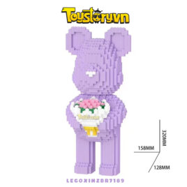 Lego Gấu Bearbrick 32cm màu Tím cầm bó hoa Tặng kèm Búa – LEGOXINZBR7189