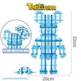 Lego Gấu Bearbrick 33cm Gấu sọc Xanh Dương – Trắng Có Nón Đội Tặng kèm Búa LEGOXINZBR7115