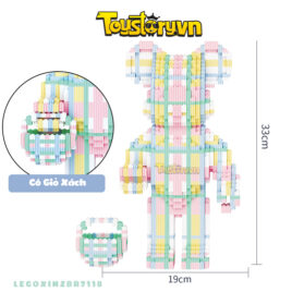 Lego Gấu Bearbrick 33cm Gấu sọc Xanh Lá – Hồng có giỏ xách Tặng kèm Búa – LEGOXINZBR7118