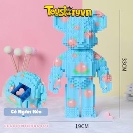 Lego Gấu Bearbrick 33cm Gấu Xanh Họa Tiết Trái Đào Có Ngăn Kéo Tặng kèm Búa – LEGOPINTABR6407