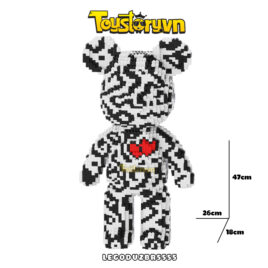 Lego Gấu Bearbrick 47cm Vằn Trắng Đen – Trái Tim Có Ngăn Kéo Tặng Búa LEGODUZBR5555