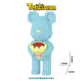 Lego Gấu Bearbrick 32cm màu Xanh Nhạt cầm bó hoa Tặng kèm Búa + đèn LED LEGOXINZBR7188