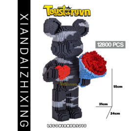 Lego Bearbrick 55cm Gấu Đen Cầm Bó Hoa Hồng Size lớn LEGOXIANBR9210
