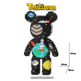 Lego Gấu Bearbrick 47cm Màu Đen Họa Tiết Tàu Vũ Trụ Có Ngăn Kéo Tặng Búa + Đèn LED LEGODUZBR5541