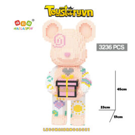 Lego Gấu Bearbrick 40cm Gấu Hồng Áo Trắng, Quần Hồng Size lớn LEGOHAIBRD91002