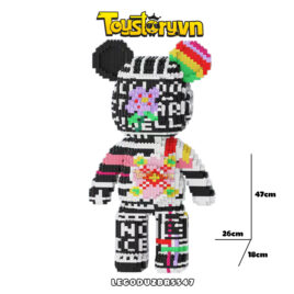 Lego Gấu Bearbrick 47cm Màu Đen – Trắng Họa Tiết Bông Hoa Có Ngăn Kéo Tặng Búa LEGODUZBR5547