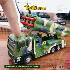 Những mô hình xe quân sự có sự thu hút đặc biệt với các bé trai như: Mô hình xe tăng, Mô hình xe Jeep, Mô hình máy bay, Mô hình xe tải quân sự,… Tại Toystory.vn chúng tôi có mô hình xe Quân sự chở tên lửa được làm bằng nhựa ABS cao cấp. Mô hình xe chớp được đèn và tiếng xe tạo cảm giác thích thú cho các bé. Xe có bệ chứa 6 quả tên lửa có thể nâng hạ bệ phóng cũng như bật nút bắn. Tham khảo thêm các loại Xe mô hình khác có tại Toystory.vn